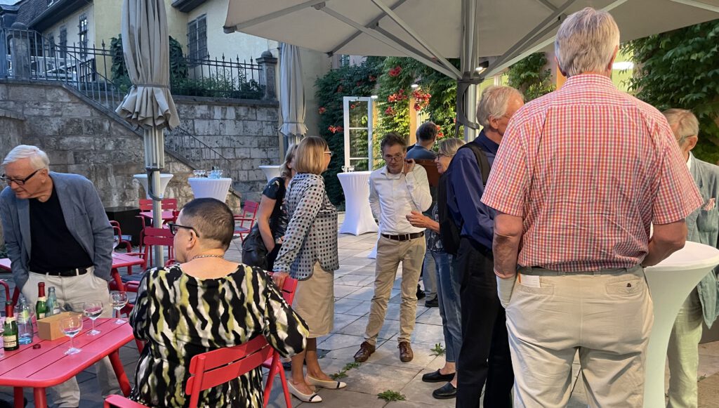 Am vergangenen Dienstag, dem 23. August, konnte der Präsident der Goethe-Gesellschaft Stefan Matuschek das 138. Goethe-Jahrbuch feierlich präsentieren. Im Festsaal des Goethe-Nationalmuseums lobte er die Arbeit von Frau Petra Oberhauser, die in den vergangenen 24 Jahren Redakteurin des Jahrbuchs war und auch das kommende Jahrbuch noch grundlegend vorbereitet hat. Ihre Arbeit übernimmt ab nun Anne Fuchs, die im Goethe- und Schiller-Archiv arbeitet. Michael Jaeger aus Berlin hielt den Festvortrag unter dem Titel „Des Menschengeistes Meisterstück“. Fausts moderne Ökonomie und sorgte damit für eine angeregte Diskussion, die anschließend bei sommerlichen Temperaturen und einem Glas Wein im Garten des Goethe-Hauses fortgesetzt wurde.