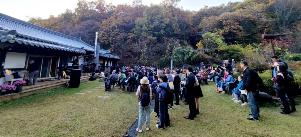 Zur Eröffnung des Hauses am 28. Oktober 2023 kamen viele Gäste: Michael Knoche, der ehemalige Direktor der Herzogin Anna Amalia Bibliothek, war extra aus Weimar angereist, und Stefan Matuschek, der Präsident der Goethe-Gesellschaft, nahm per Zoom teil und sprach Begrüßungsworte. Clemens Treter, der Direktor des Goethe-Instituts Seoul, sowie Martin Kasperek, Kulturattaché der deutschen Botschaft in Seoul, waren mit ihren Familien gekommen. Mit ihren Reden beeindruckten sie die einheimischen Gäste, der Bürgermeister vor Ort dankte es ihnen in seiner Ansprache. Die Senioren des Dorfes wurden vor allen anderen eingeladen. Auch ohne explizite Einladung kamen viele Gäste, einer sogar aus Salzburg. Fast tausend Leute waren da, um das neueröffnete kleine Haus zu begrüßen. (Angeblich soll das Dorf in der Nähe noch nie in seiner Geschichte so voll von Autos gewesen sein.)