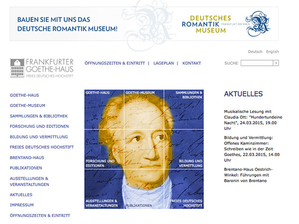 Das Freie Deutsche Hochstift ist eines der ältesten Kulturinstitute Deutschlands und eine gemeinnützige Forschungsinstitution. Zu ihm gehört als ideeller und anschaulicher Mittelpunkt Goethes Elternhaus am Großen Hirschgraben in Frankfurt am Main.