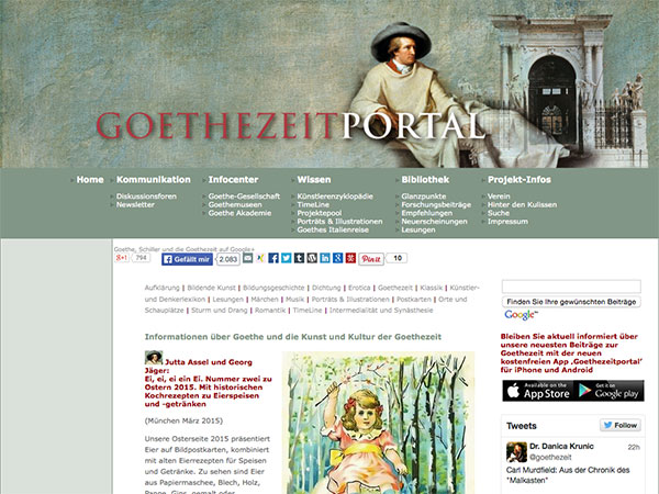 Der Verein des Goethezeitportals wurde im Oktober 2002 mit Sitz in München gegründet. Zweck des Vereins ist die wissenschaftliche Vermittlung der Kunst und Kultur der Goethezeit auf multimedialer Basis.