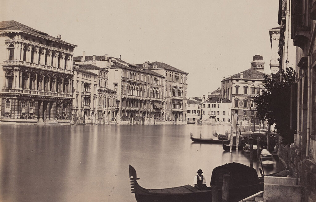 Volker Wolter hat jene Orte aufgelistet, die sie in Venedig besuchten, und sie mit historischen Aufnahmen dokumentiert. Massive Plattenkameras auf soliden Gestellen kamen damals zum Einsatz, häufig arbeitete der Fotograf abgedunkelt hinter einem Tuch. Gläsern waren die Negative, die Abzüge erfolgten auf Albumin- oder Salzpapier. Erstaunlich scharf sind die Konturen, offenbar waren recht bald die Belichtungszeiten so kurz, dass Bewegungen kaum verwischt wurden. Bei älteren Bildern bemühte der Fotograf geduldig posierende Statisten; weiche Schatten und Flecken im Bild verraten, wo sich unbeteiligte Fußgänger oder Boote bewegten.