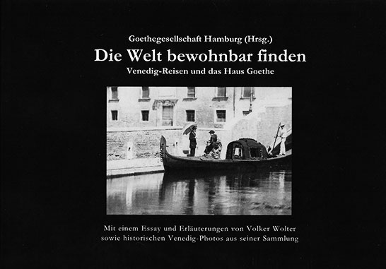 Unter dem Titel „Die Welt bewohnbar finden. Venedig-Reisen und das Haus Goethe“ hat Volker Wolter historische Aufnahmen der Lagunenstadt zusammengestellt von Plätzen, die vier Generationen der Goethes besucht und beschrieben haben. Bereits 1740 war Johann Caspar Goethe in Italien, Sohn Johann Wolfgang folgte ihm 1786 und 1790, der Enkel August starb 1830 in Rom und Ottilie von Goethe besuchte Venedig, gemeinsam mit ihrem Sohn Walther, mehrfach zwischen 1845 und 1859. Über diese Aufenthalte in Venedig im Lauf von mehr als 100 Jahren haben sie Tagebücher geführt, Briefe und Berichte hinterlassen. Rein privater Natur waren die Texte von Großvater und Enkel, nur Johann Wolfgang hatte von Anfang an eine Veröffentlichung im Sinn und bat Frau von Stein – in der Rolle einer Mitarbeiterin oder Sekretärin –, seine ihr vorab übersandten Tagebücher für eine Publikation vorbereitend zu redigieren.